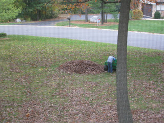 Is there any better sight for a mother than to look out her window and see her child voluntarily doing chores? Tate was raking leaves into one pile, loading them onto the Gator, then driving over to the "BIG" pile, and then unloading them. He went back and forth many times in an attempt to help me with the leaves. He is such a good boy.